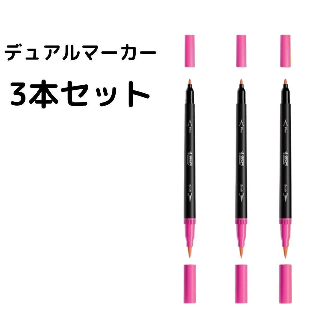 127 水性 2in1 デュアルチップ マーカー ピンク 3本セット 事務用品 |