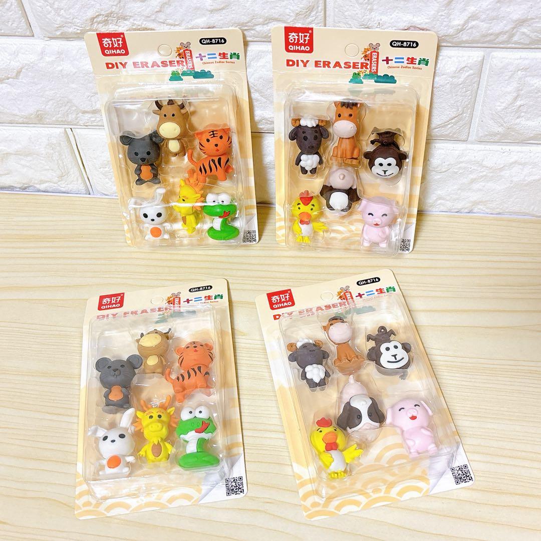 ⭐️ 動物消しゴム 十二支消しゴム 消しゴム 12個 パズル消しゴム |