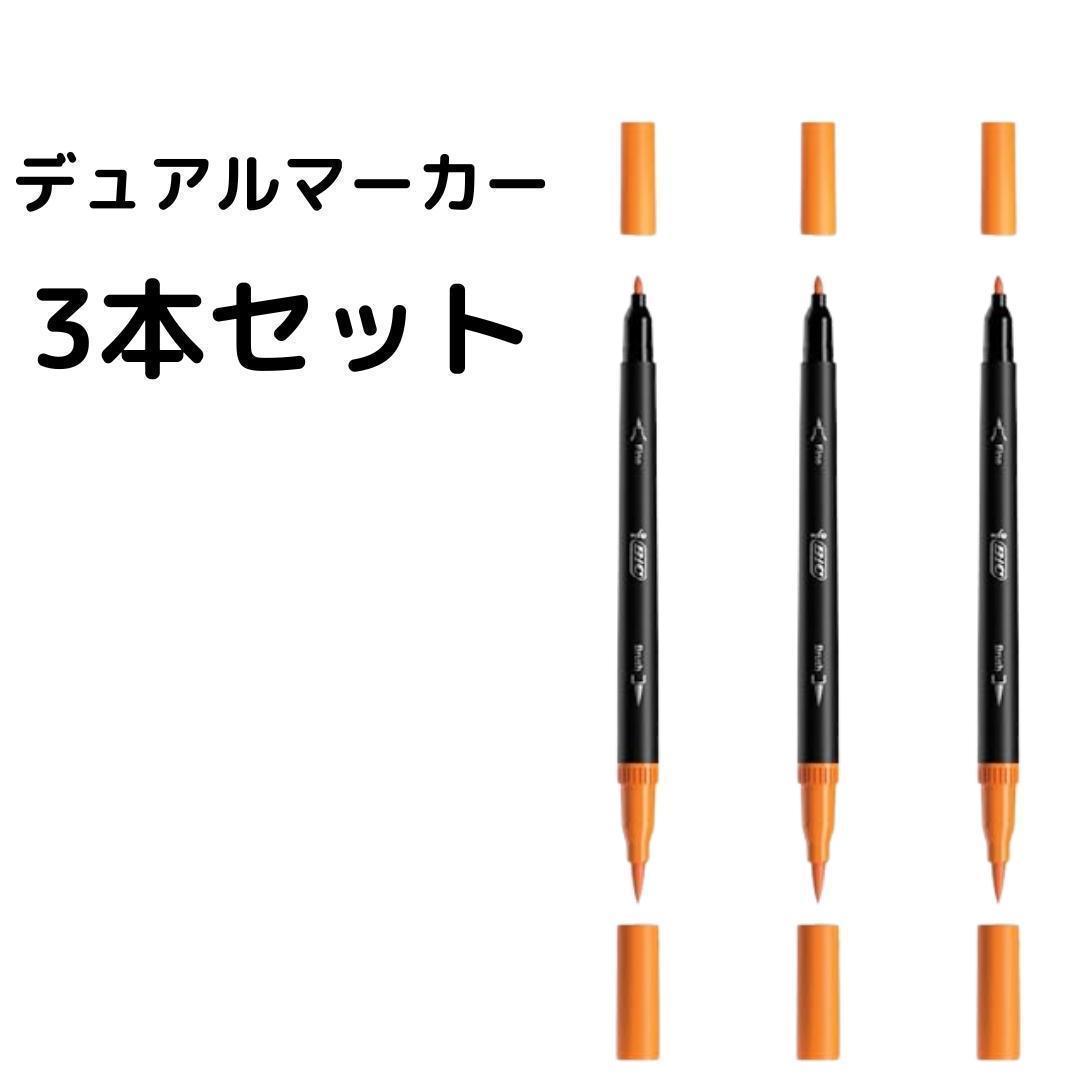144 水性 2in1 デュアルチップ マーカー オレンジ 3本セット |