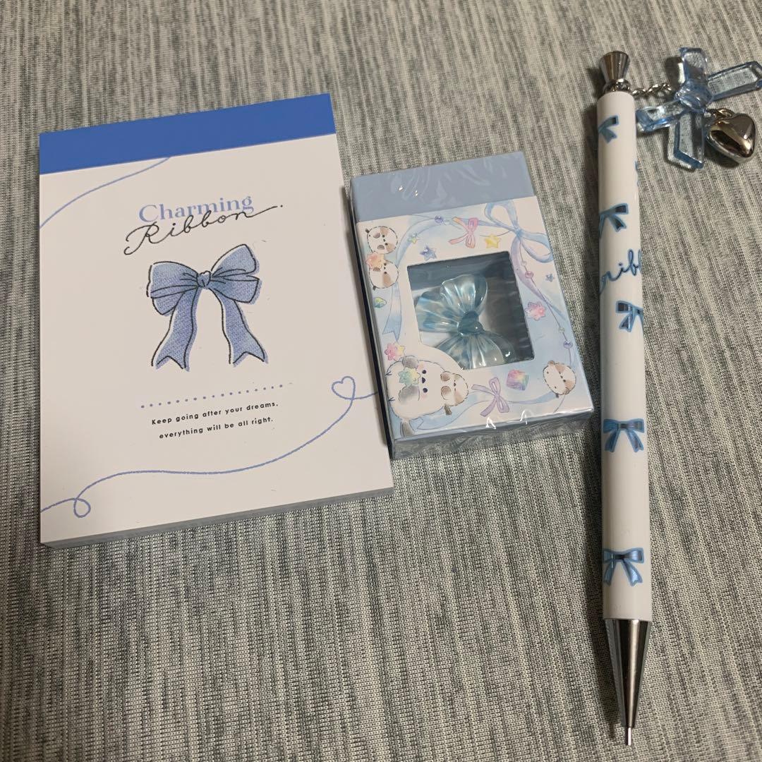 淡い可憐な♡ブルー×リボン シャーペン ミニメモ リボンチャーム入り消しゴム |